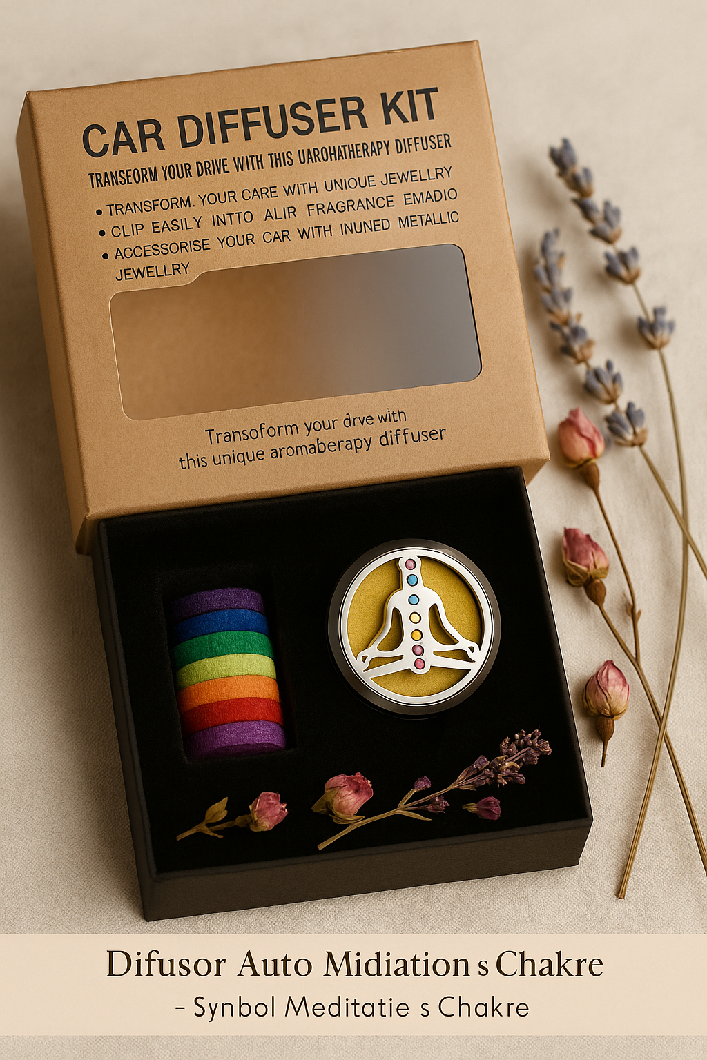 Difuzor Auto Aromaterapie – Simbol Meditație și Chakre